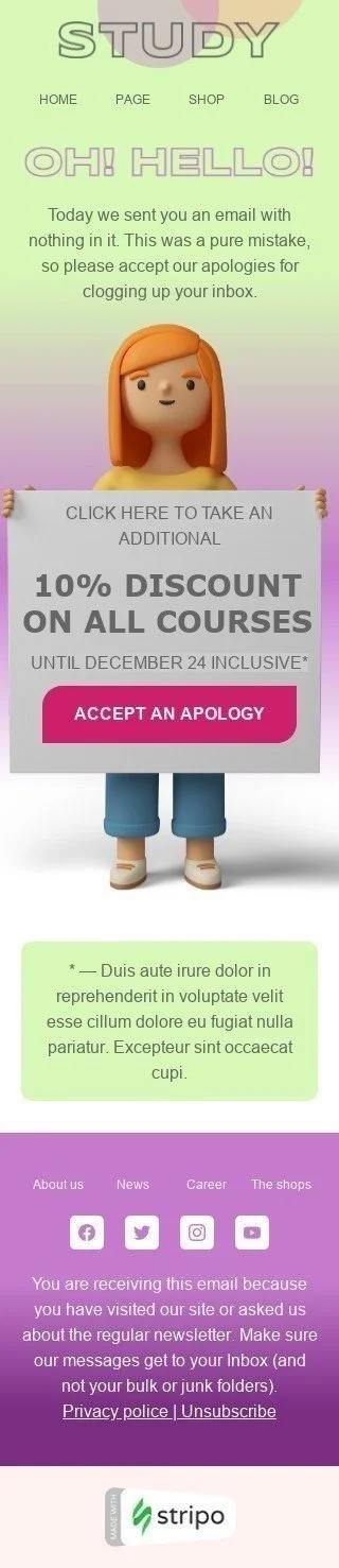 Sometimes situations arise when it is necessary to apologize. The Apology Email Template "Accept an apology" can help you do just that. This template is designed specifically for the education industry, and can be easily customized to fit your specific situation. It includes space for you to explain what happened, take responsibility for your actions, and express your sincere apologies.Making a sincere apology is the first step to making things right. With the Apology Email Template "Accept an apology", you can start repairing the damage caused by your mistake and begin rebuilding trust with the people you've affected.