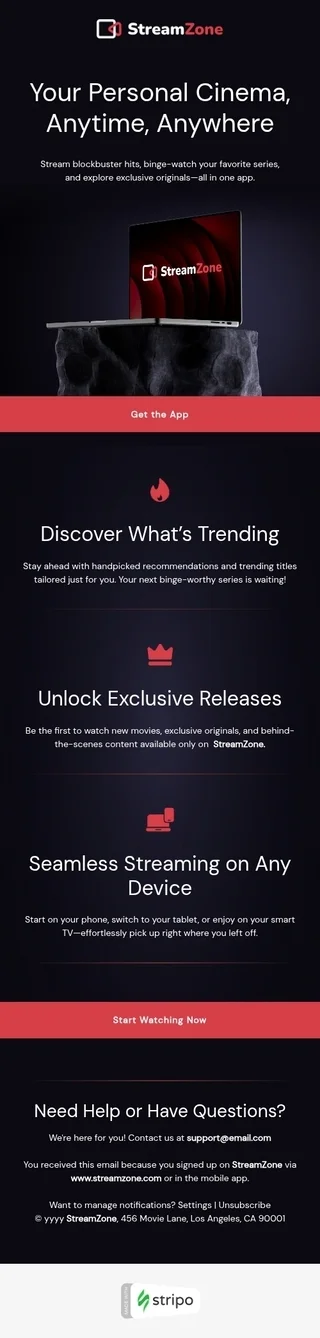 Step into a world of entertainment with our "Your Personal Cinema" app install email template, designed for the mobile applications industry. This template invites users to download and install your app, transforming their device into a personal cinema. Highlight the key features such as streaming movies, TV shows, and exclusive content all at their fingertips. With a visually engaging design, it emphasizes convenience, customization, and an immersive viewing experience. Trust this template to drive app installations, offering users instant access to unlimited entertainment wherever they go.