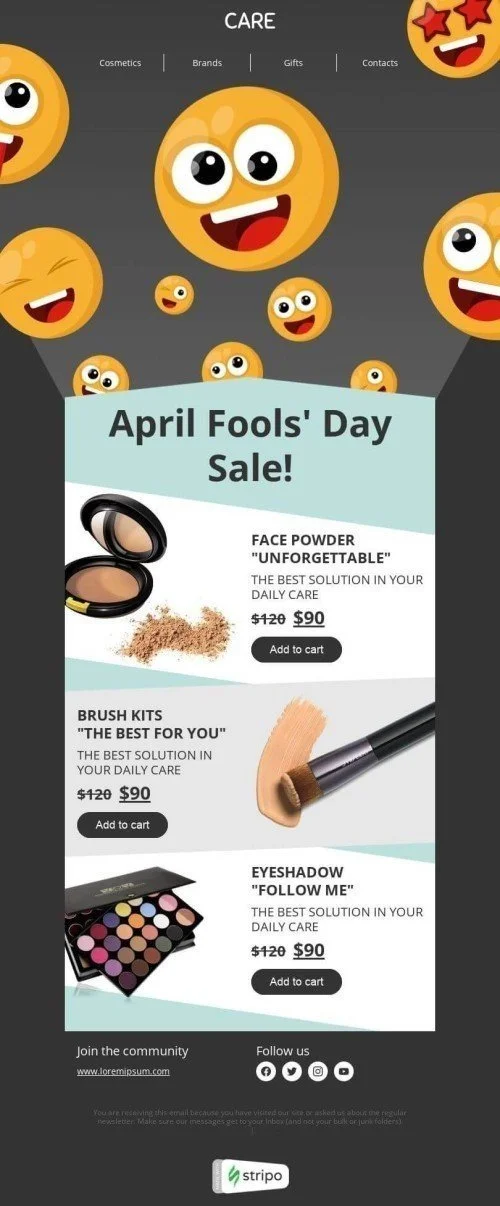 April Fools' Day Email Template «April Fool's Day sale» for Beauty & Personal Care industry