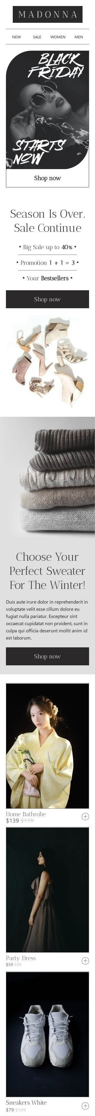 Black Friday Email Template «Choose your perfect sweater» for Fashion industry