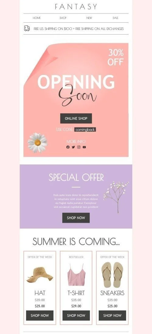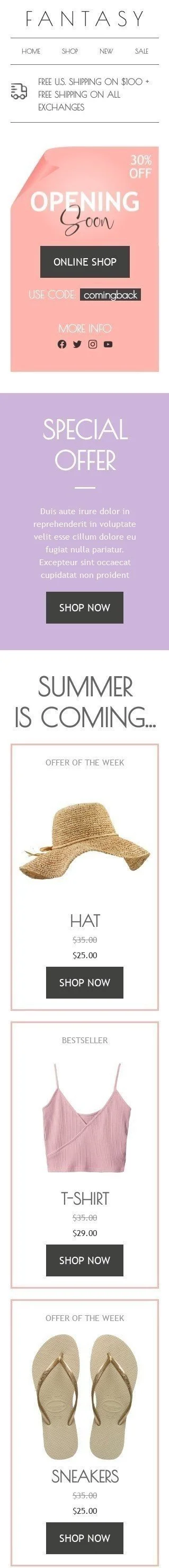 Coming Soon Email Template "Opening soon" for Fashion industry