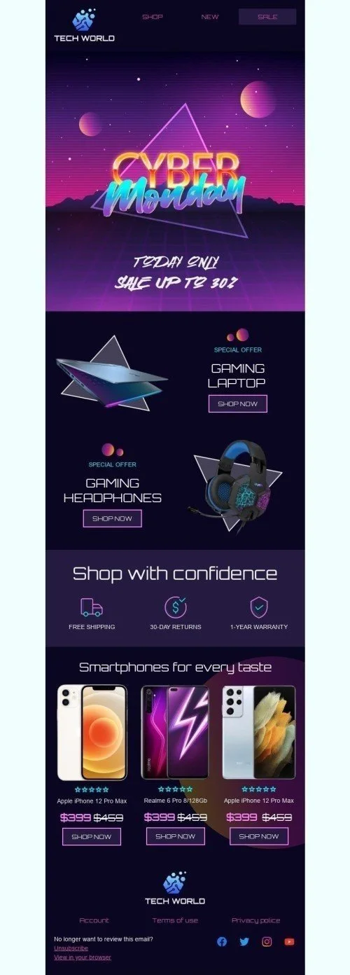 Cyber Monday Email Template «Shop with confidence» for Gadgets industry
