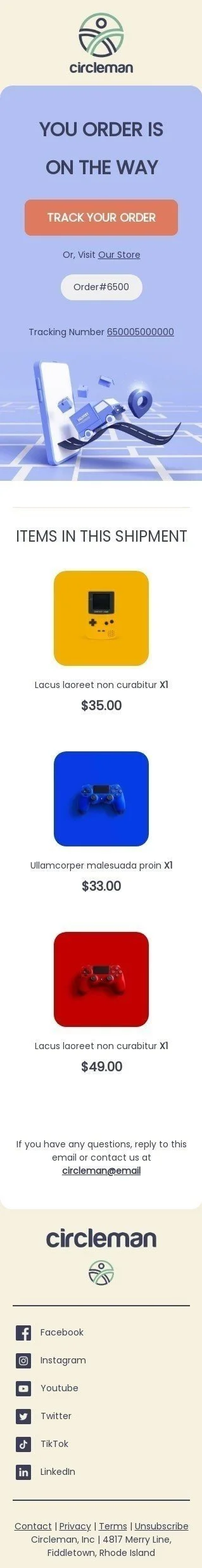 Keep your customers informed about the status of their order with our Delivery Email Template "Track your order". Perfect for the Gadgets industry, this automated email will include a tracking link for customers to follow the progress of their order and estimated delivery date. It also includes a message from the company reminding the customers that they can reach out to customer support if they have any questions. This template is easy to customize and will help improve customer satisfaction and trust by providing all the necessary information to track their orders.
