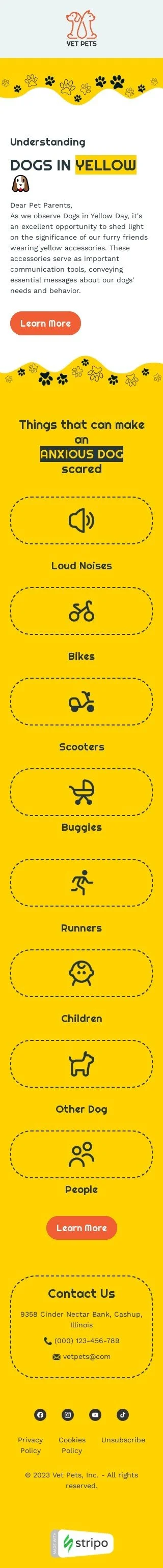 Celebrate responsible pet ownership with "Pet Parents" email template designed for the pets industry on Dogs in Yellow Day. This template honors dogs who need space with empathetic content and supportive messaging. Share tips for dog interactions, safety precautions, or community events effortlessly. Whether for devoted pet owners or advocates of canine welfare, this template simplifies communication and sets the standard for compassionate emails on Dogs in Yellow Day in the pets industry. Trust its efficiency to promote responsible pet care and nurture a supportive community of pet parents.