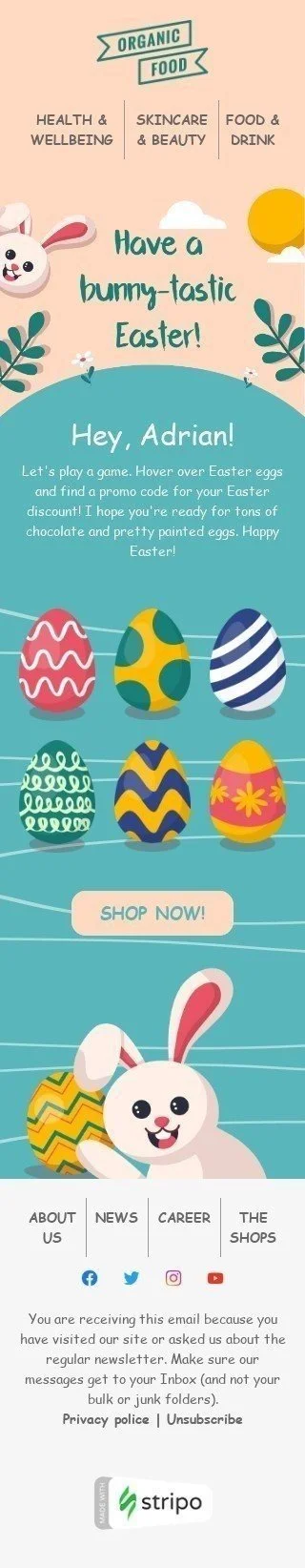 Easter Email Template "Have a bunny-tastic Easter!" for Organic & Eco Goods industry