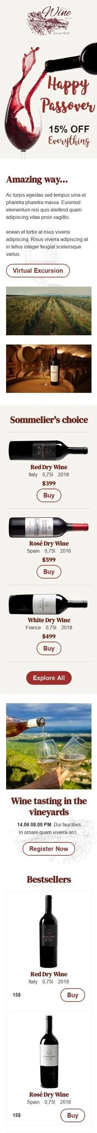 Easter Email Template «Sommelier's choice» for Beverages industry