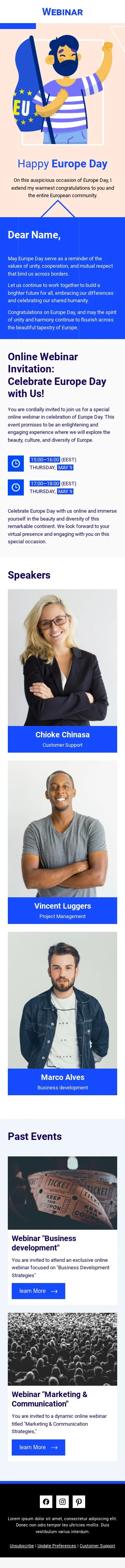 Europe Day email template "Celebrating together" for webinars industry