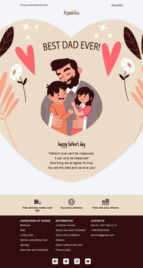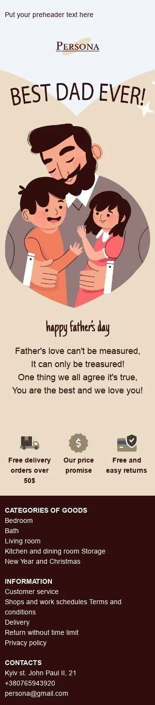 Father’s Day Email Template «Best dad ever» for Furniture, Interior & DIY industry