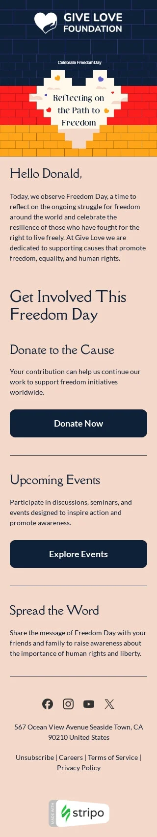 Freedom Day email template "Honoring freedom day" for nonprofit industry