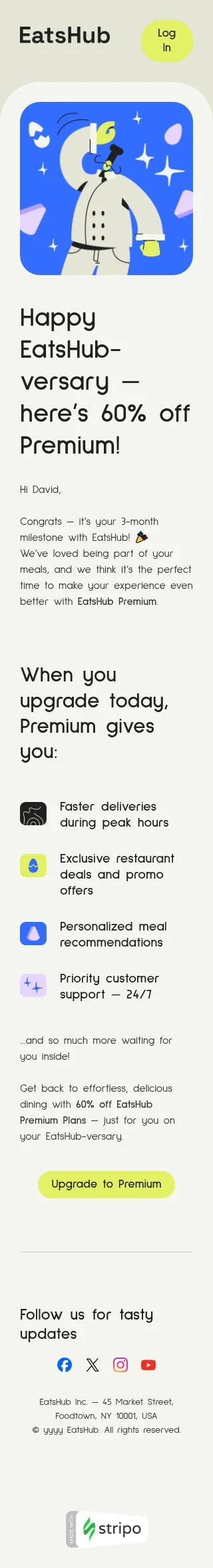 Freemium to Premium email template "Tasty updates" for mobile applications industry