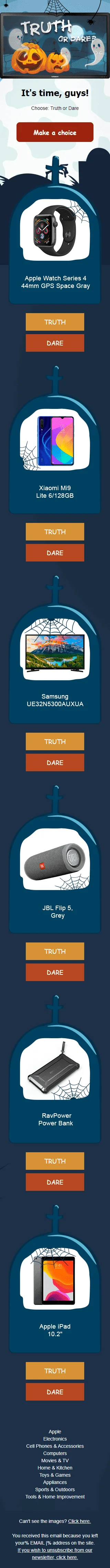 Halloween Email Template «Make Your Choice: Truth Or Action!» for Gadgets industry