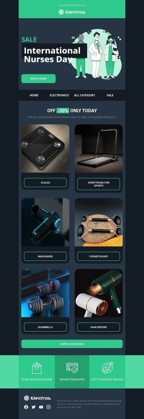 Show your appreciation for nurses this International Nurses Day with our "Gizmos" email template! Perfect for the gadgets industry, this template showcases the latest tech and gadgets that make life easier for nurses on-the-go. With a clean and modern design and a focus on practicality, this template is the perfect way to promote your brand and support the hardworking nurses of the world. Whether you're promoting new arrivals, sales, or special events, this template will help you reach customers and get them excited about the latest tech for nurses. So let's celebrate International Nurses Day and show our gratitude for all they do with the "Gizmos" email template!