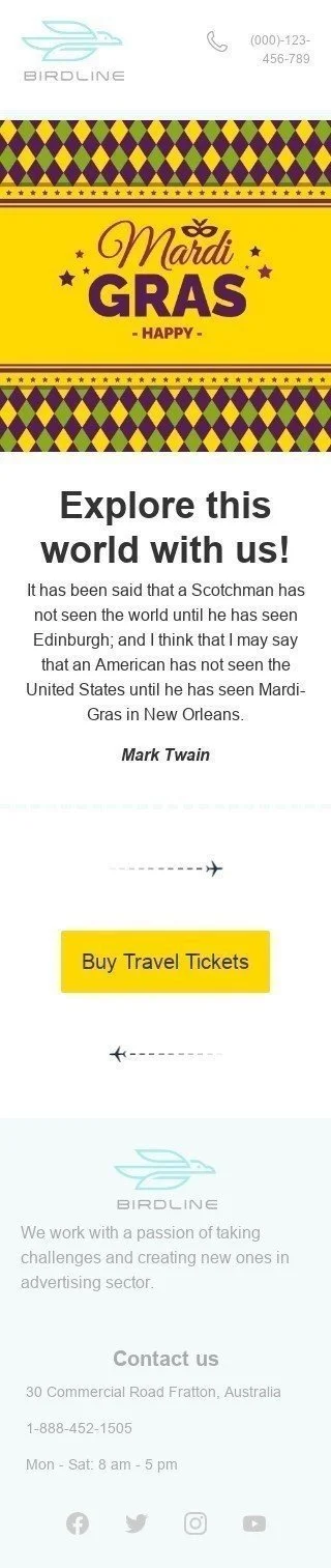 Mardi Gras Email Template «Buy travel tickets» for Travel industry