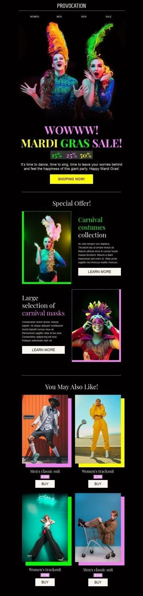 Mardi Gras Email Template "Mardi Gras Sale" for Fashion industry