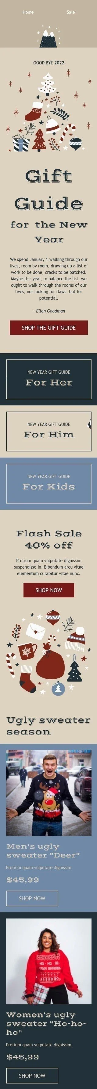 New Year email template "Gift guide for New Year" for fashion industry
