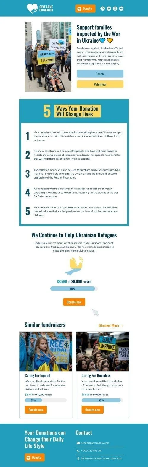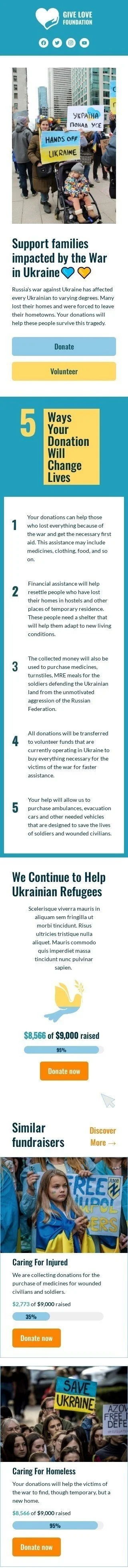 Promo email template "We continue to help ukrainian refugees" for nonprofit industry