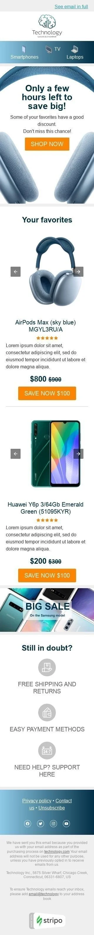 Retargeting Email Template «Sale on favorites» for Gadgets industry