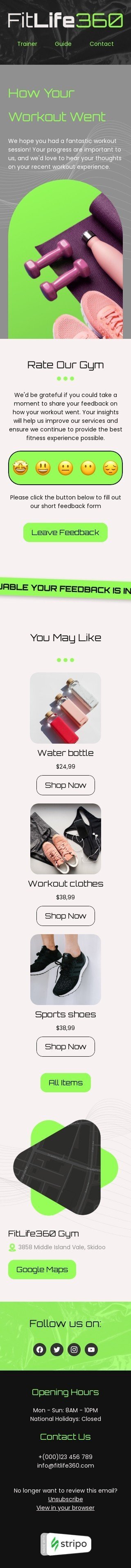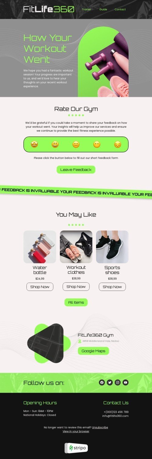 Survey & feedback email template "Post-workout" for health and wellness industry