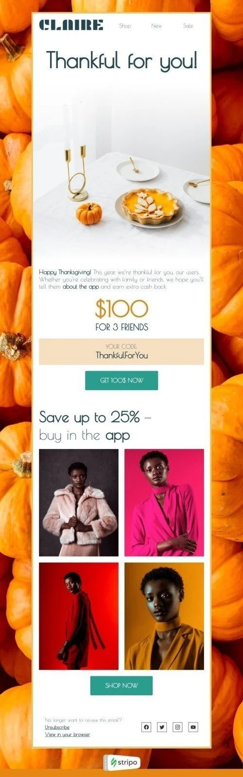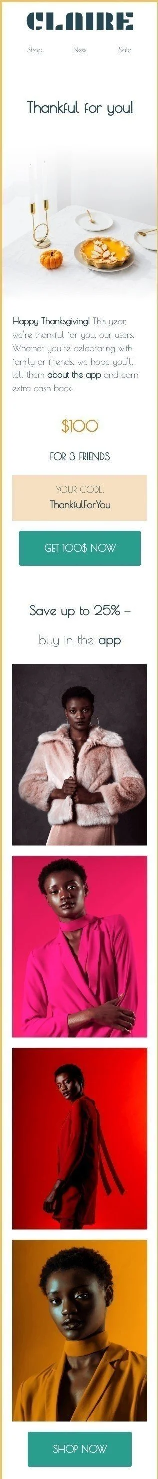 Thanksgiving Day Email Template "Thankful for you!" for Fashion industry
