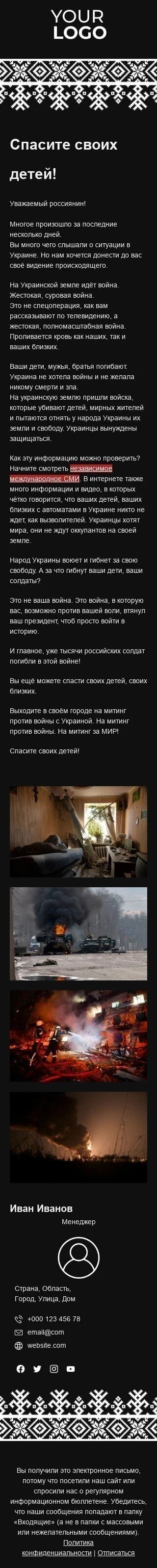 The "War Is Closer Than You Think" email template is designed to raise awareness about the impact of war and conflict around the world. The template features a powerful design that emphasizes the proximity of war and the urgency of the situation, with clear messaging and a call-to-action for people to get involved and support efforts for peace. With customizable content and visually appealing graphics, this email is the perfect tool to engage with your audience and encourage them to take action. Don't miss out on this opportunity to make a difference with our impactful email template.