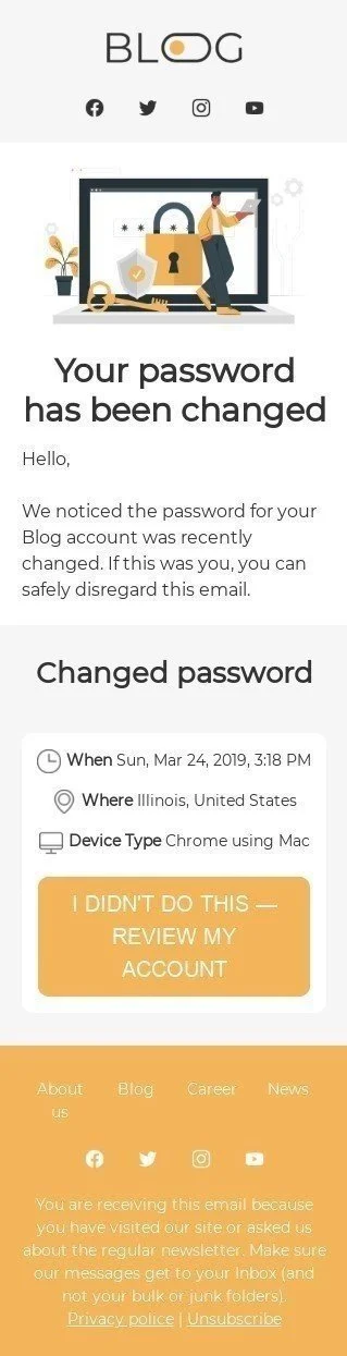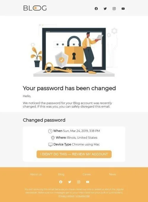 Trigger Email Template «Changed password» for Publications & Blogging industry
