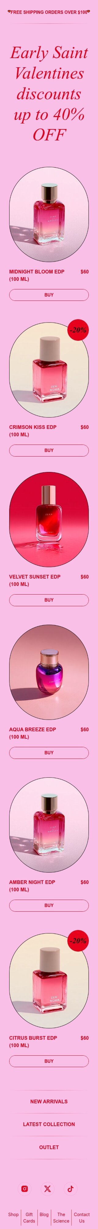 Valentine’s Day email template "Early Saint Valentines discounts" for ecommerce industry