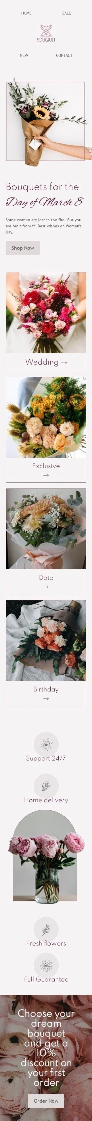 Women's Day Email Template "Best wishes on Women's Day" for Gifts & Flowers industry