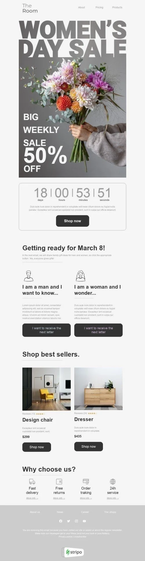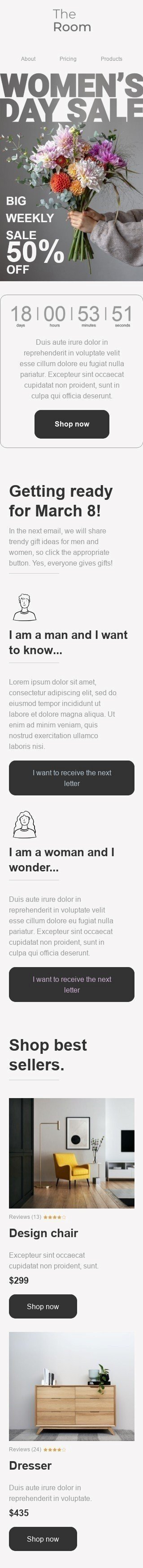 Women's Day Email Template "Big weekly sale" for Furniture, Interior & DIY industry