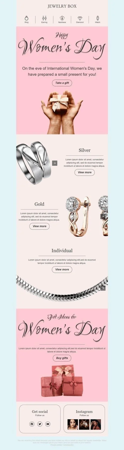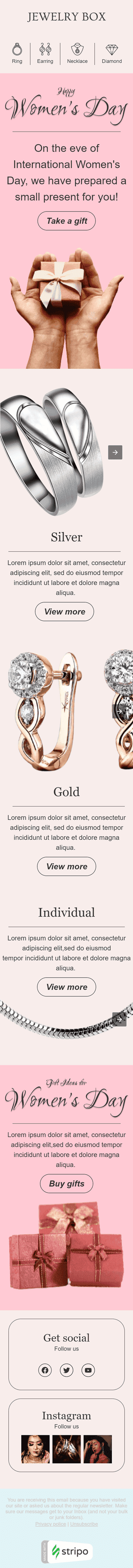 Women's Day Email Template "Jewelry box" for Jewelry industry