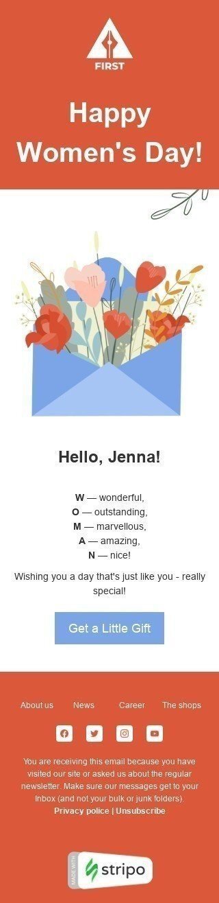 Make Women's Day really special with our "Really Special" Email Template, designed specifically for the Software & Technology industry. This email showcases our software or technology product that is perfect for women, providing them with a unique and useful tool for their personal or professional life. The template is fully customizable and includes compelling images of our product, as well as a personalized message highlighting how it can make a difference in women's lives. Ideal for promoting your Women's Day specials, this email will increase customer engagement and drive sales.
