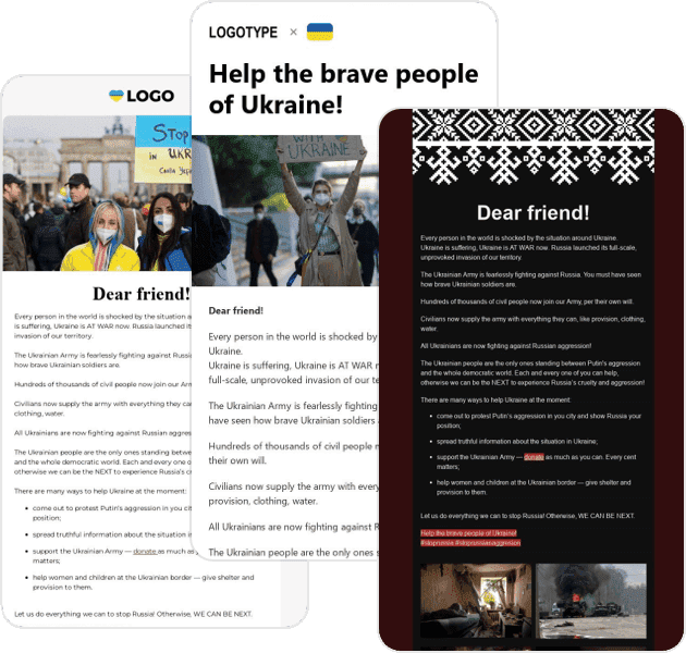Ми підготували низку шаблонів листів, щоб допомогти вам і всім нам якнайшвидше надсилати чесну інформацію щодо подій в Україні усім вашим і нашим друзям та знайомим, які не є мешканцями України.