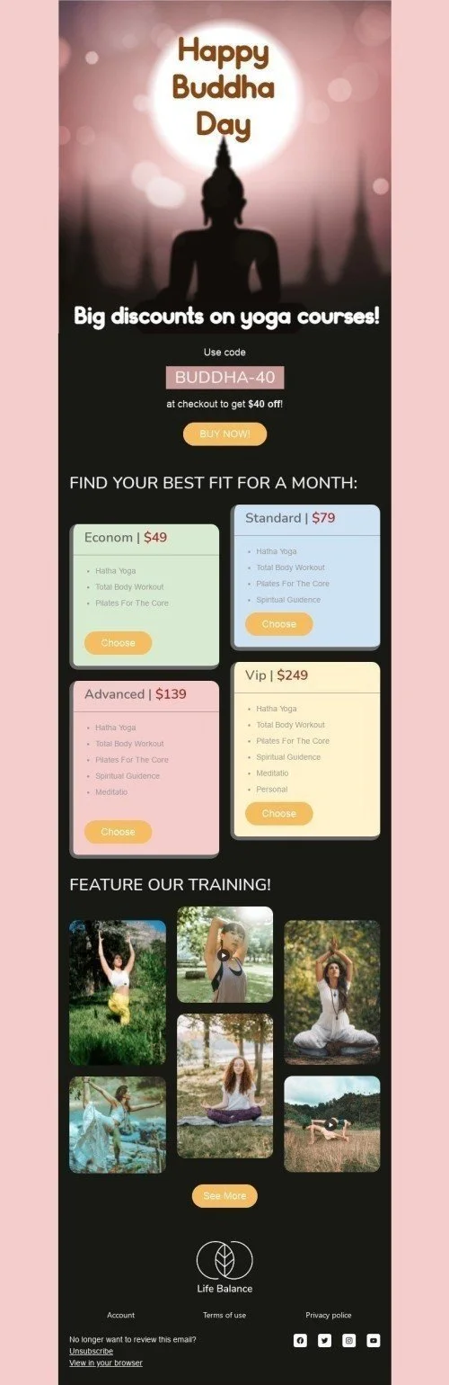 Шаблон листа до свята День Будди «Курси йоги» для індустрії «Спорт»