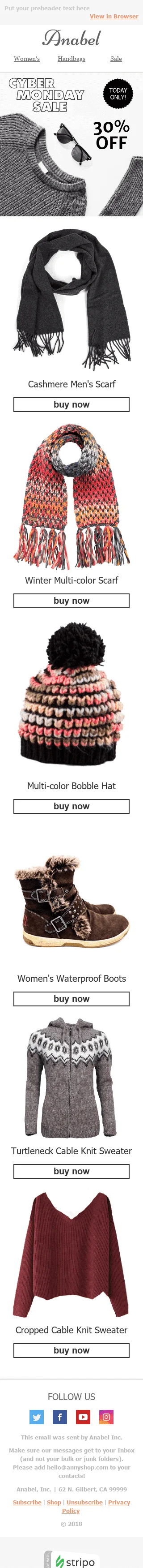 Шаблон листа до дня Кібер Понеділка "Теплі речі" для індустрії "Мода"