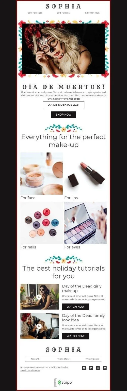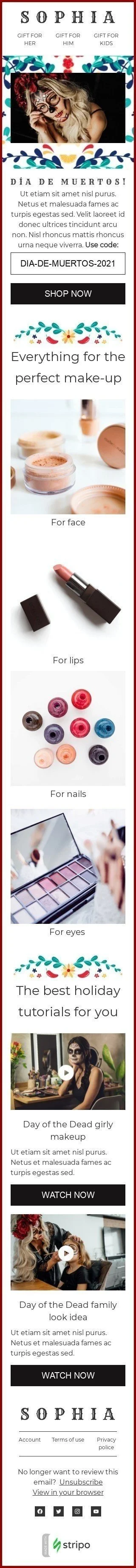 Шаблон листа до свята День мертвих «Ідеальний макіяж» для індустрії «Косметика»
