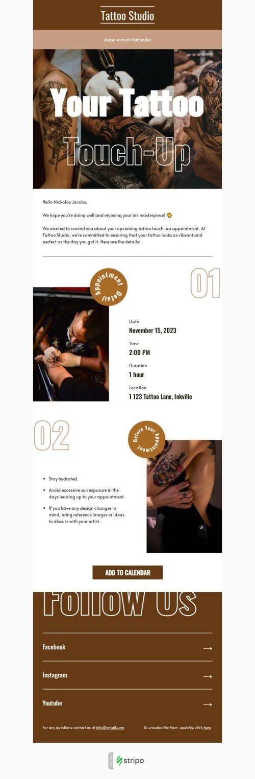 Шаблон листа «Корекція татуювання» тематики події для тату-індустрії