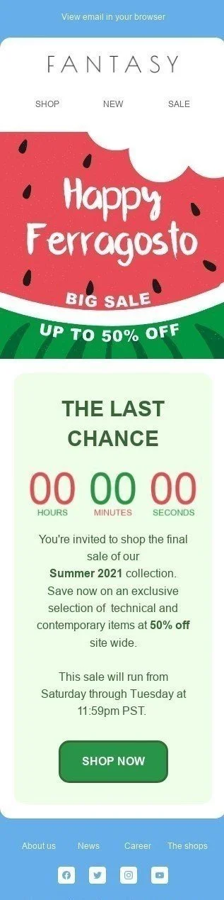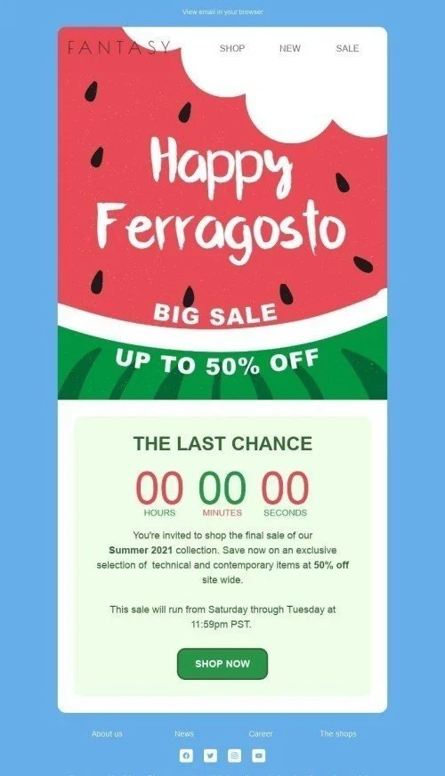 Шаблон листа до свята Феррагосто «Ви запрошені до магазину» для індустрії «Мода»