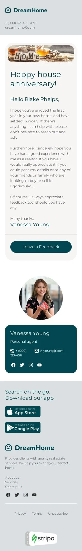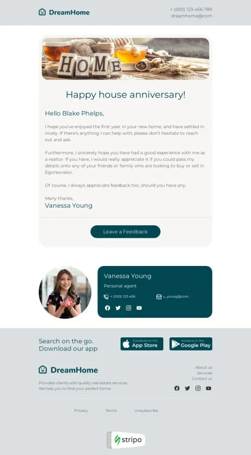 Наш шаблон електронного листа "Однорічний моніторинг" є ідеальним інструментом для професіоналів у сфері нерухомості, щоб залишатися на зв'язку зі своїми клієнтами та показати свою прихильність до їх задоволення. Шаблон має персоналізований та дружній дизайн, який відзначає річницю з моменту покупки їхньої власності. Завдяки налаштовуваному контенту та візуально привабливій графіці, цей електронний лист надає можливість перевірити стан справ, вирішити будь-які проблеми та запропонувати допомогу у будь-яких поточних потребах. Не пропустіть цю можливість зміцнити свої стосунки з клієнтами та продемонструвати свою відданість їхньому довгостроковому задоволенню нашим професійним та впливовим шаблоном електронного листа моніторингу.