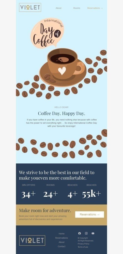 Шаблон листа до свята Міжнародний день кави «Щасливий день кави» для індустрії «Готелі»