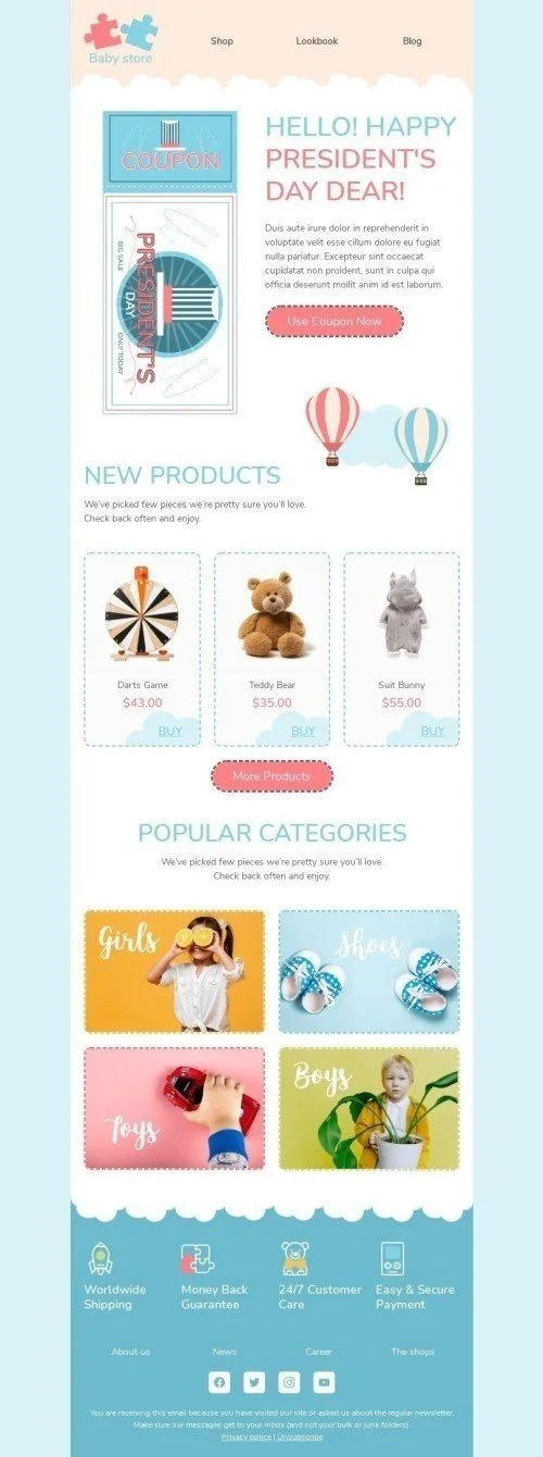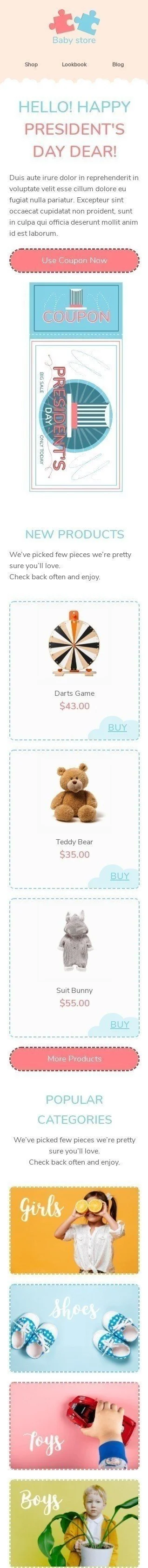 Шаблон листа до свята Президентський день «Купон на День президентів» для індустрії «Діти»