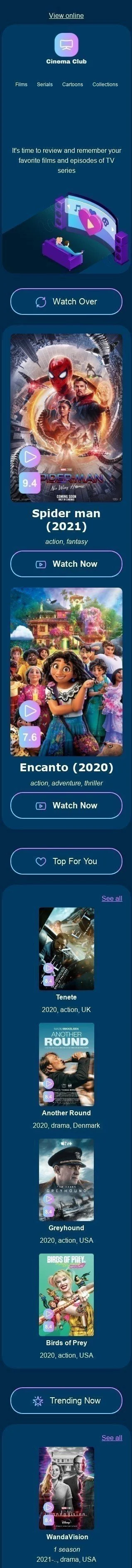 Цей зручний інструмент email-маркетингу допоможе вам легко створювати спеціалізовані, персоналізовані листи, які обов'язково привернуть їхню увагу. З цим шаблоном ви зможете спонукати клієнтів частіше повертатися на вашу платформу, пропонуючи знижки, можливості та акції. Крім того, загальний дизайн шаблону робить унікальний акцент на кіно, що чудово впишеться в компанії у сфері кіноіндустрії.