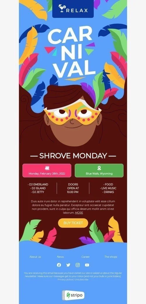 Шаблон листа до свята Масляний понеділок «Відпочиньте» для індустрії «Захоплення»