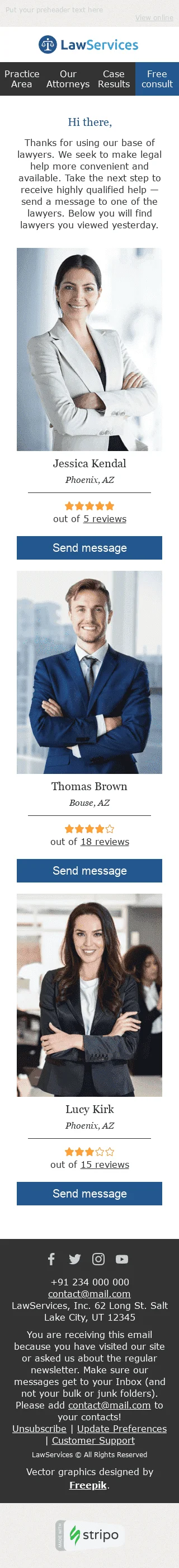 Якщо ви шукаєте висококласний шаблон листа з подякою для юридичного бізнесу, то зверніть увагу на наш шаблон «Якісна допомога». Цей шаблон розроблений і написаний професійно, щоб забезпечити максимально можливий рівень якісної допомоги команди юристів. Він також містить безліч можливостей, завдяки яким ви зможете легко налаштувати його відповідно до своїх потреб. Наприклад, можна використовувати наш drag and drop редактор, щоб швидко додати або видалити будь-які потрібні блоки контенту. То чого ж ви чекаєте? Скористайтеся нашим шаблоном листа «Якісна допомога» просто зараз!