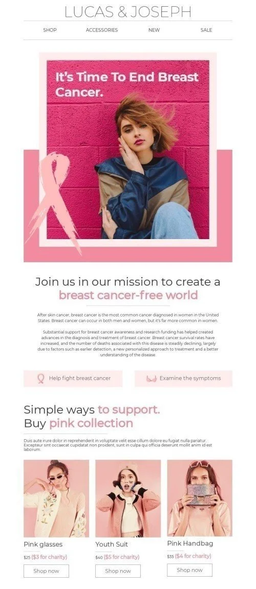 Шаблон листа до свята Місяць боротьби з раком молочної залози «Світ без раку молочної залози» для індустрії «Мода»