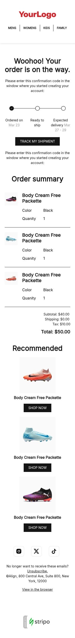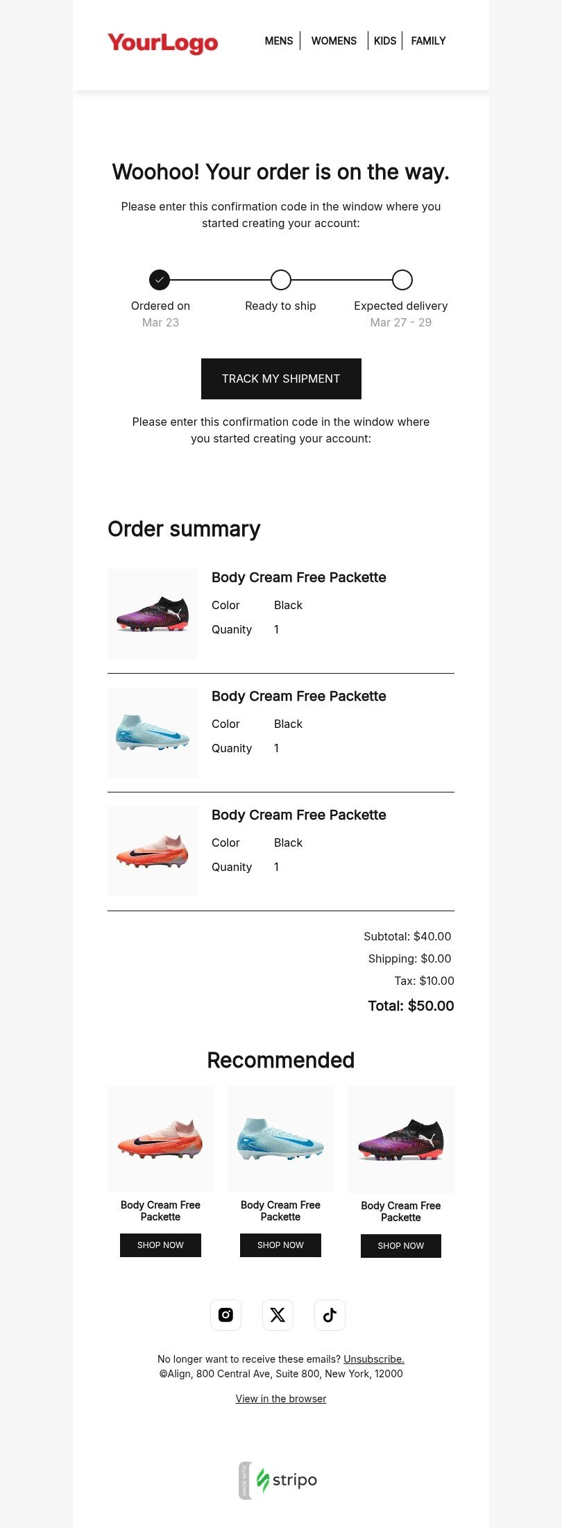 Шаблон листа «Замовлення вже в дорозі» тематики транзакційні для індустрії «Мода»