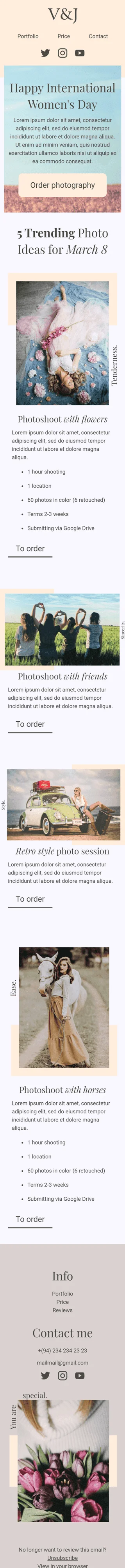 Шаблон листа до свята Жіночий день «Модна ідея для фото» для індустрії «Фотографія»